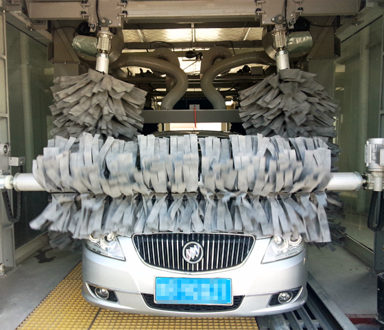 本款設備既能快速洗車,又能連續式洗車,每小時可實現50-60輛車的清洗能力,她的引進,大大的滿足了有較大營業場地,洗車量大的客戶的需求,她同時兼顧輪胎高清洗度和車身高擦干度,并具有拋光的功能。